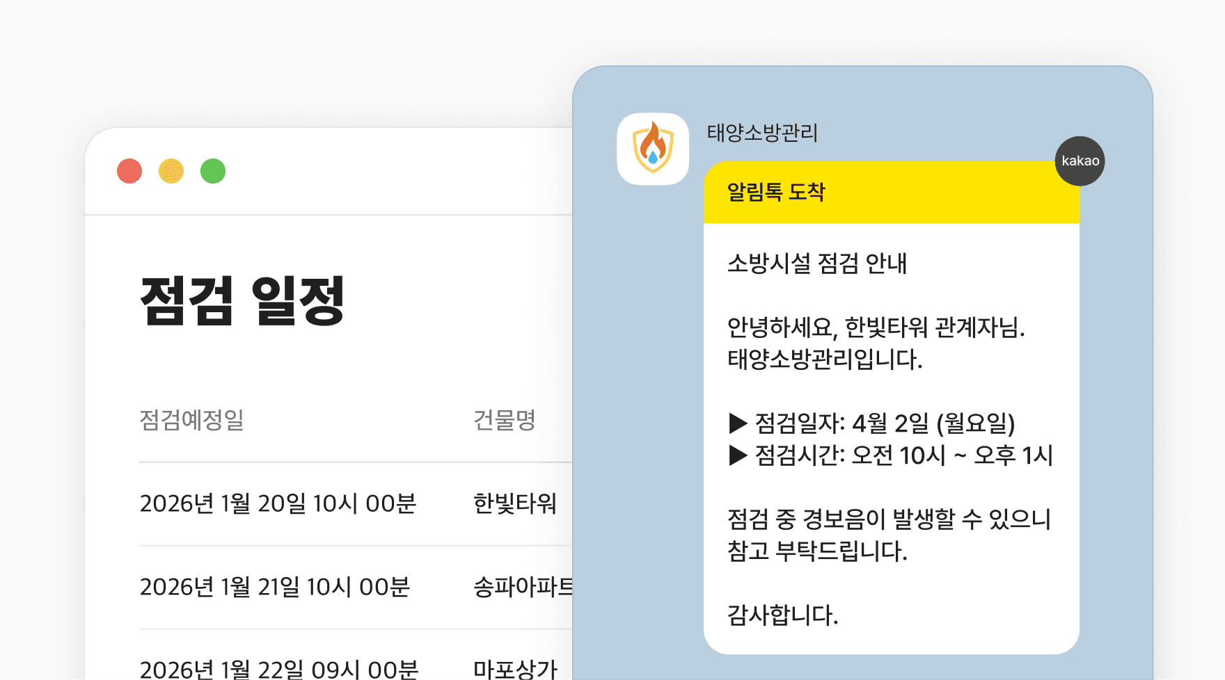 점검 일정이 다가오면 건물 관계자에게 자동으로 안내합니다.