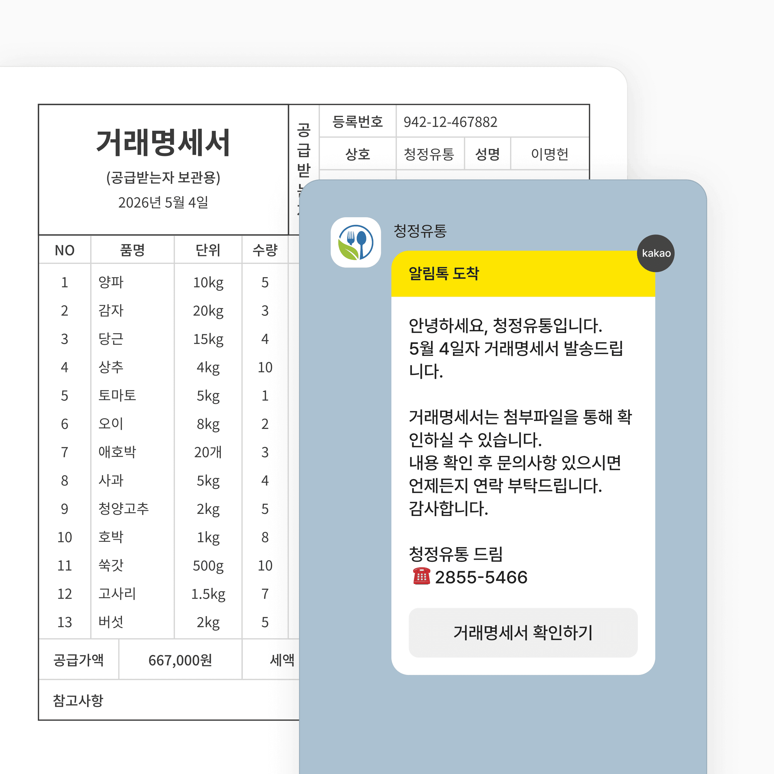 납품 후 거래명세서를 카카오톡으로 바로 발송.