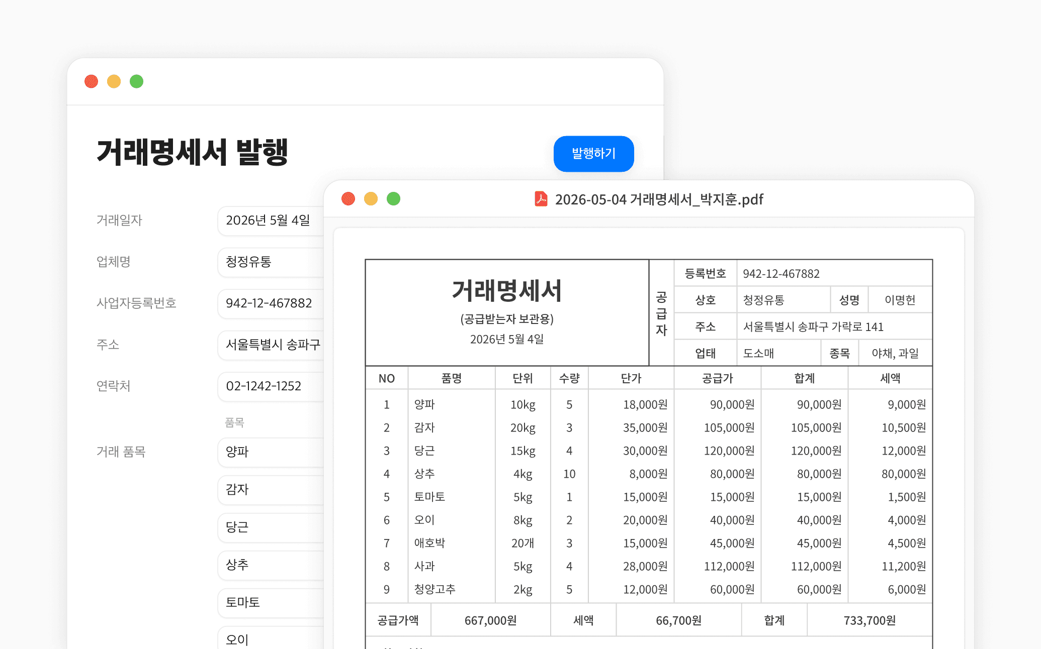 거래처별로 클릭 한 번에 자동 생성.