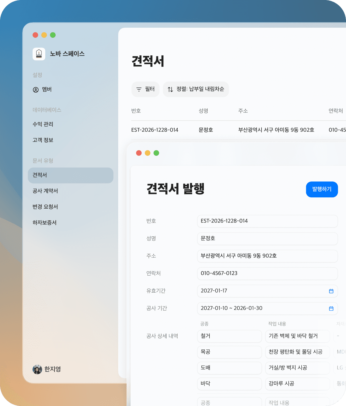 고객 스마트폰에 도착하는 깔끔한 견적서 한 장이 우리 업체의 깔금한 첫 인상을 만듭니다.