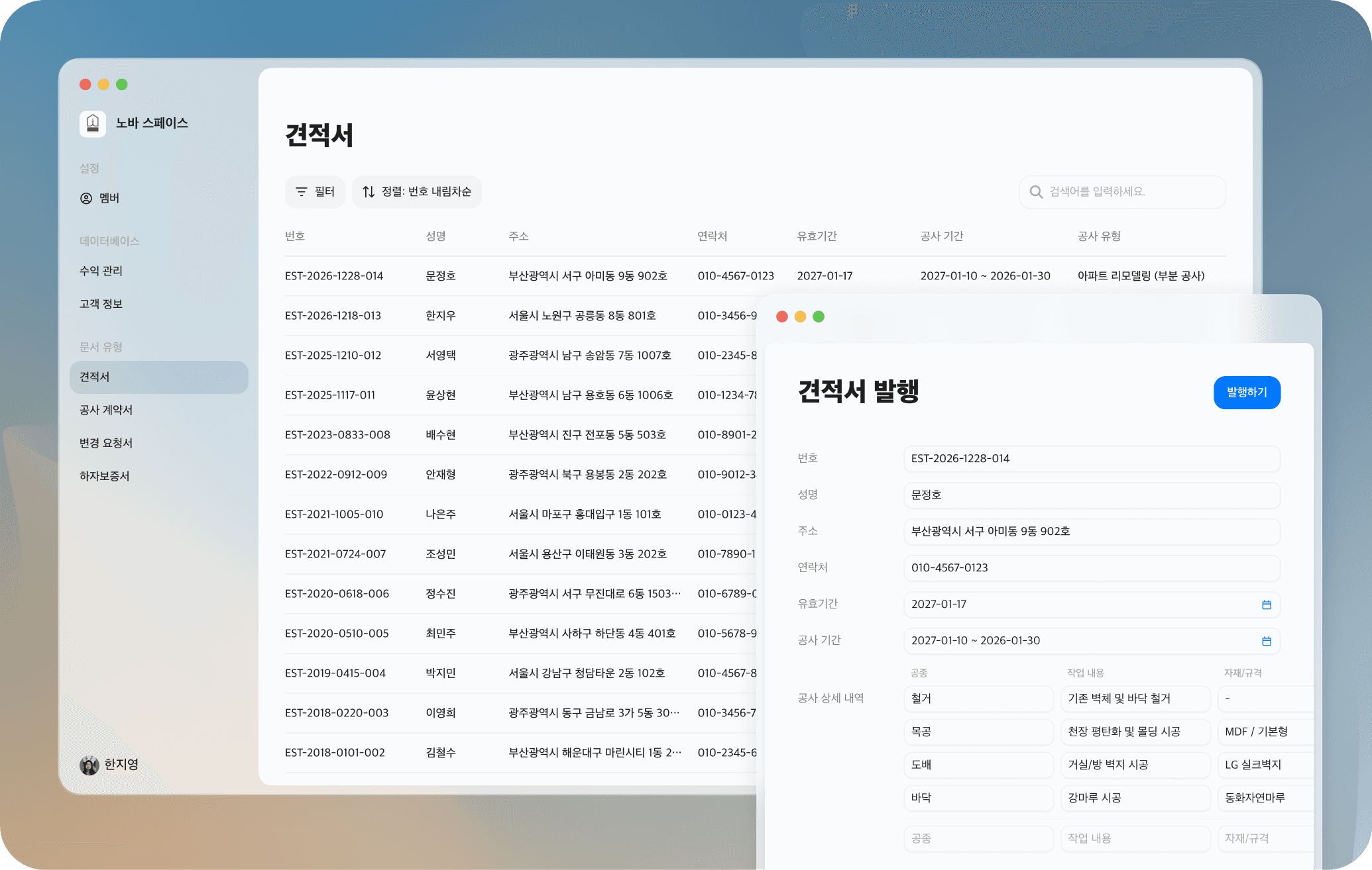 견적서 발행부터 현장별 수익 관리까지