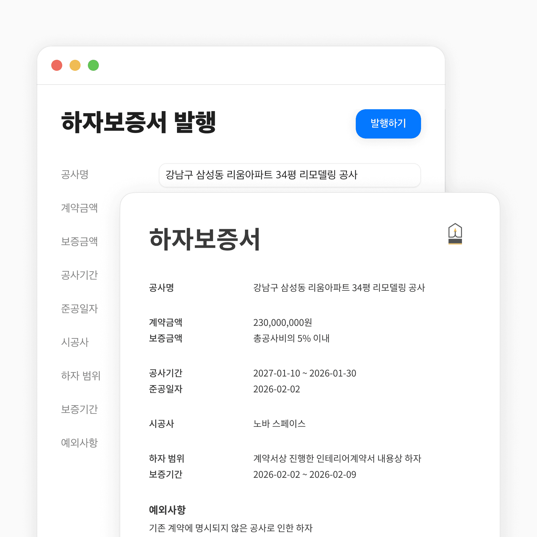 하자보증서 발행
