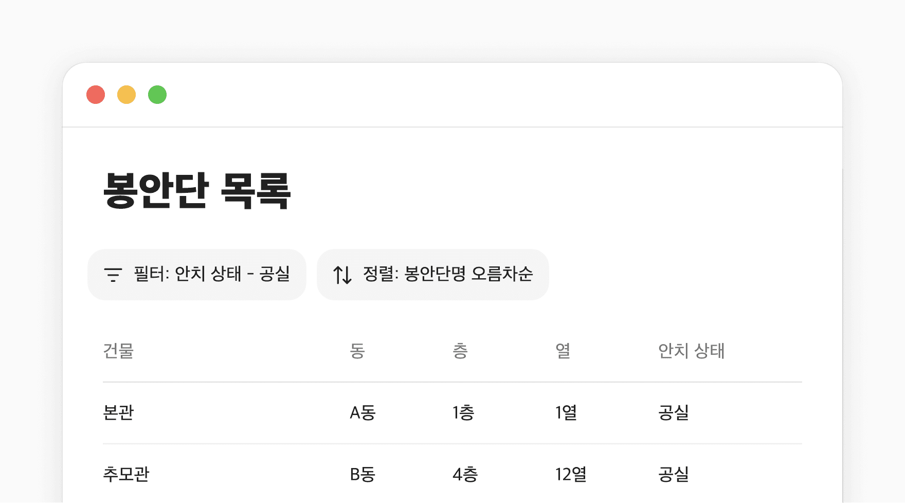층별·구역별 사용 현황과 향후 공실 예정 자리를 실시간으로 확인하세요. 상담 중에도, 보고할 때도, 데이터가 먼저 답합니다.