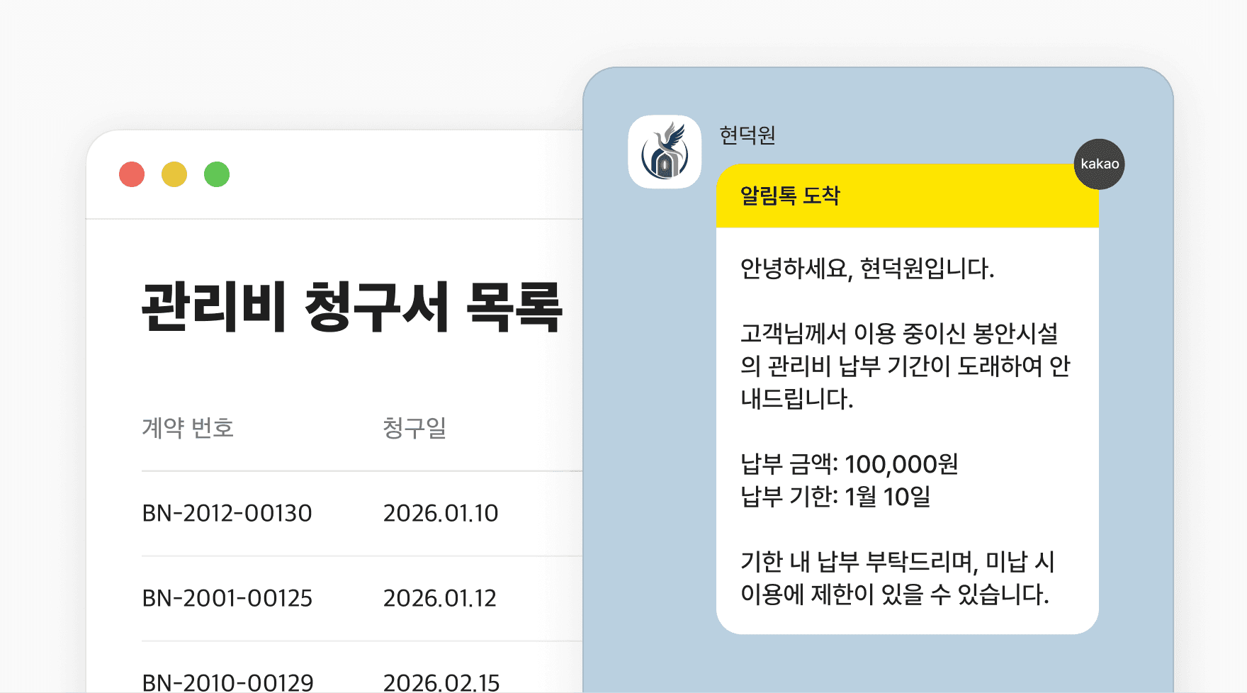 관리비 납부 알림톡
