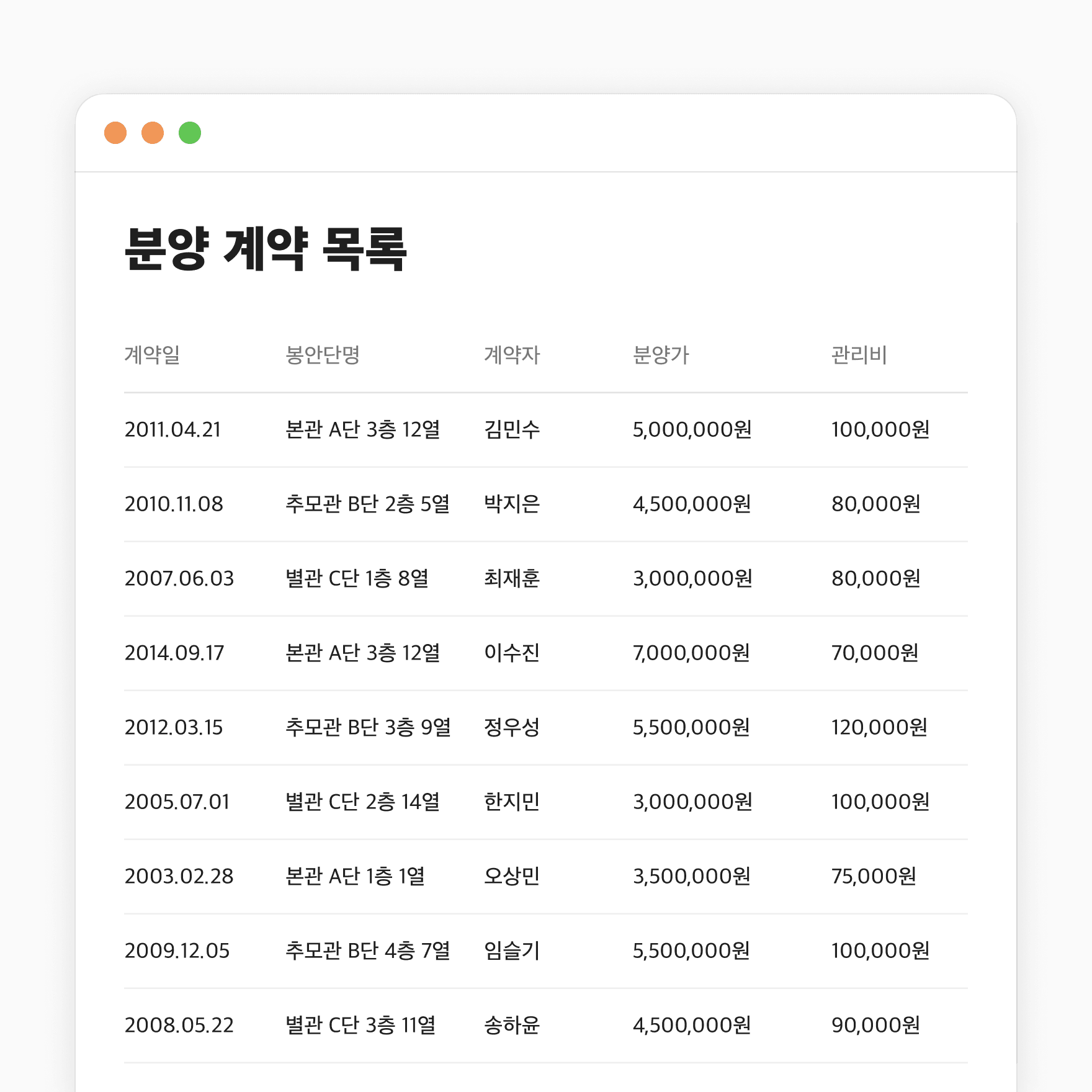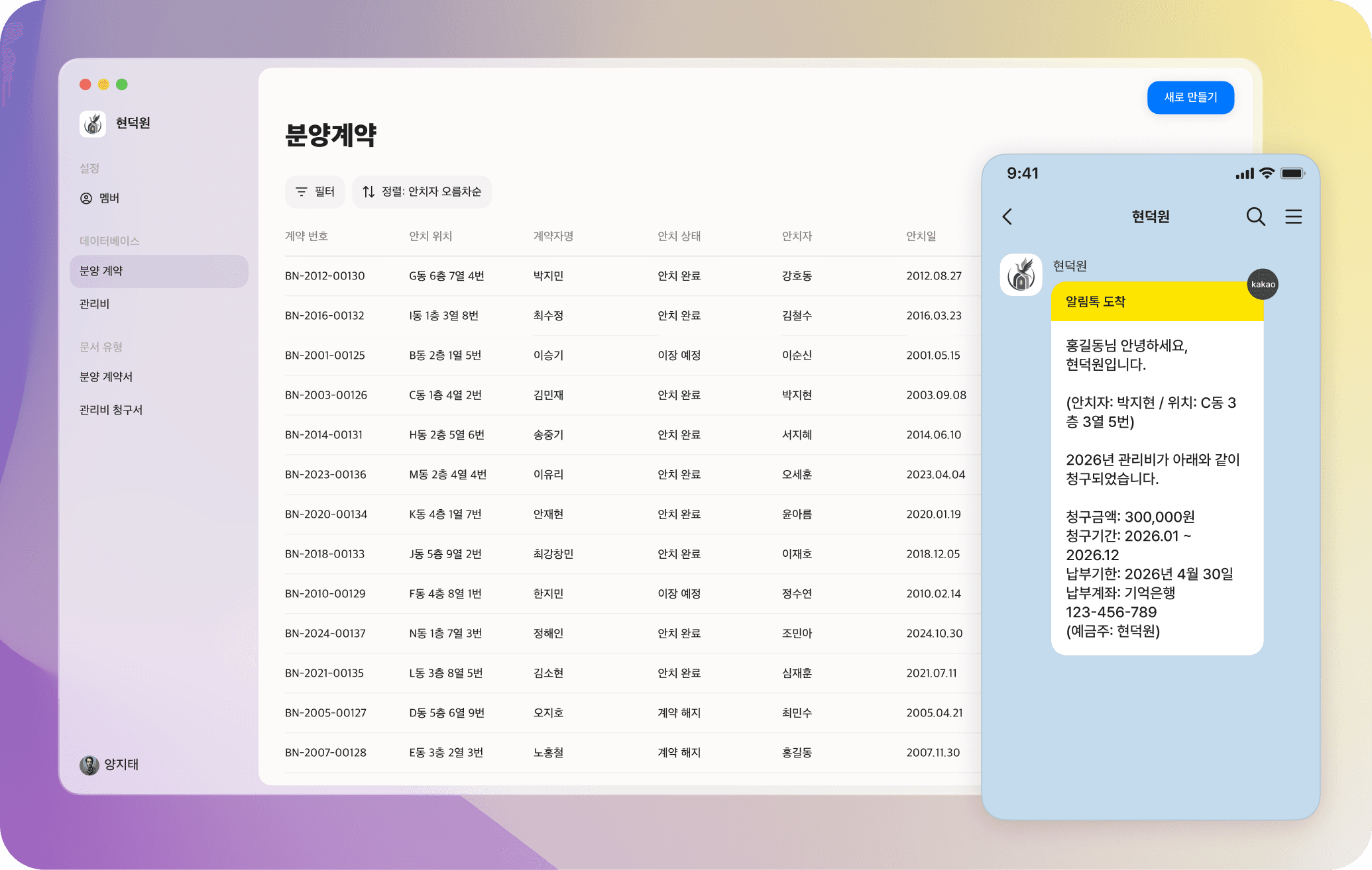 봉안 계약일, 만료일, 갱신 이력. 수십 년치 자료가 언제든 그대로 조회됩니다. 담당자가 바뀌어도, 데이터는 바뀌지 않습니다.