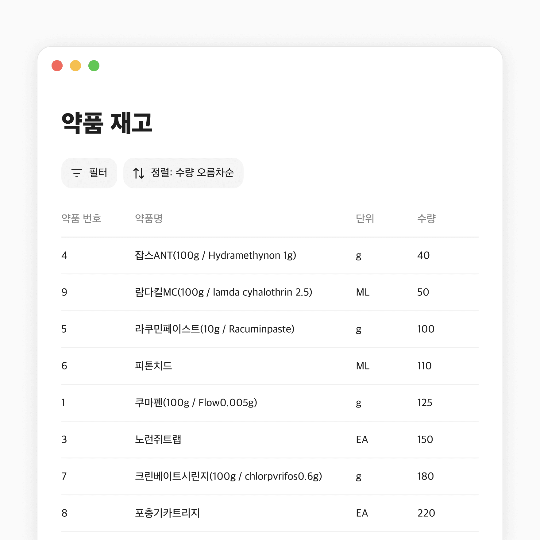 약품 재고 자동 차감